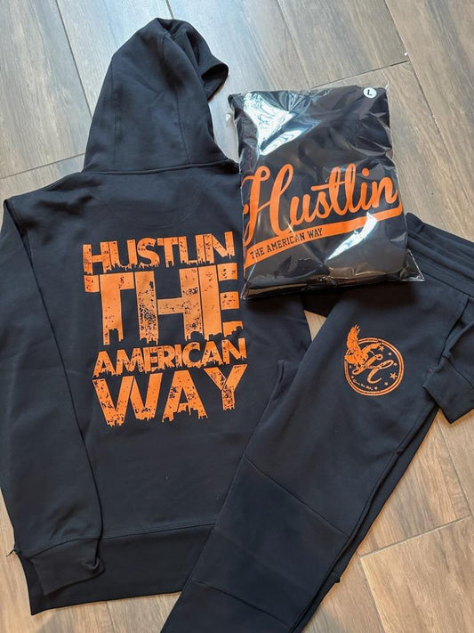 Black & Orange Hustlin the American Way Sweatsuit Set